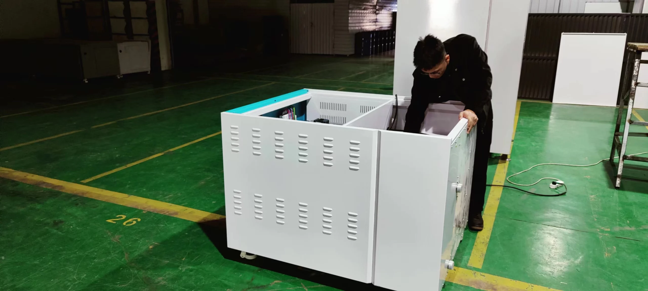 Box Technology staff is checking the 40KW immersion cooling box:
