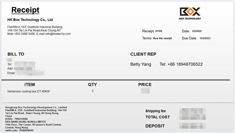 Customer Bxx from Australia purchased 40KW immersion cooling box